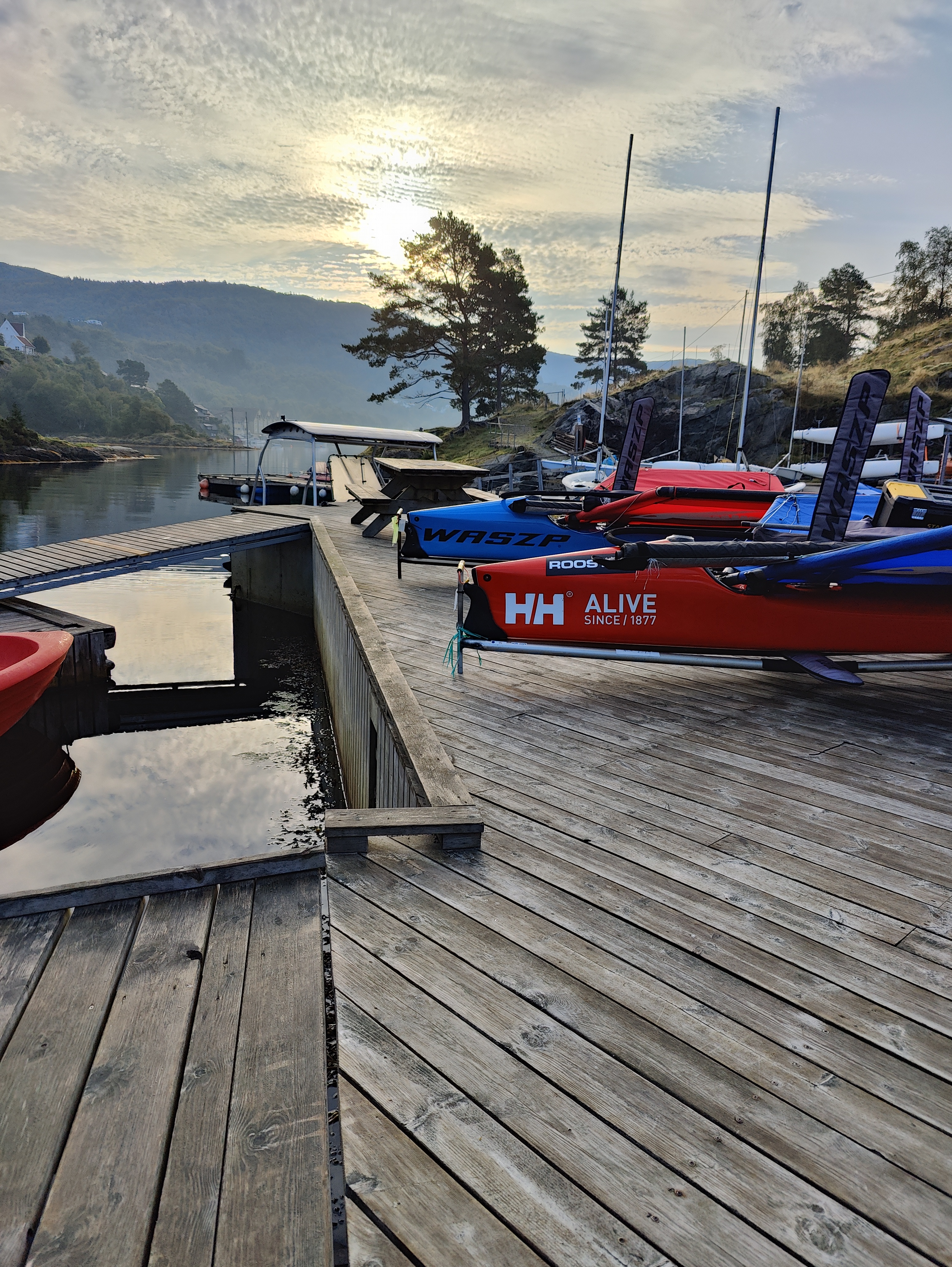 Lørdagen bød på gode forhold for alle seilerne. Det begynte med en liten time med AP på land før vi kunne slippe seilerne på vannet. Lette forhold til å begynne med, for så å øke på mot slutten av dagen. Det ble med seilasene på lørdagen. Søndag våknet vi til tåke og absolutt ingen vind. Det lille som var meldt om morgenen kom aldri, og varselet kom ikke med noen løfter om at det skulle komme noe som seilerne kunne seile på før det ble alt for sent